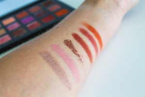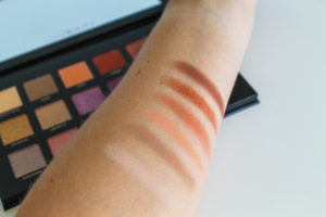 Van links naar rechts: Desert Sand, Musk, Eden, Amber, Blood Moon en Oud. Wat. Intens. Maar echt. Mensen ik snap nu al de hype. De formule is zo zacht, maar nog steeds met zoveel pigment. Fantastisch. De matte kleuren werken fijn en blenden erg makkelijk. Op de huid is Eden iets meer oranje, een echte perzik kleur. Musk is ook wat minder grijs dan in het palette. Blood Moon, is zacht en een prachtige kleur. Wat een glans!