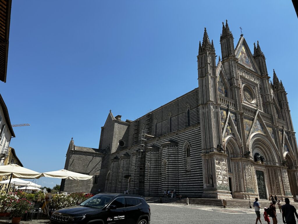 Toen wij aankwamen, gokte we om naar boven door te rijden voor het parkeren. Je kan ook “beneden” aan de stad parkeren (Orvieto staat op een tufstenen plateau) en dan neem je de tandratbaan naar boven. Het parkeren lukte, want het was zondag. Wij hadden geen andere optie, maar een bezoek aan Orvieto op zondag is niet ideaal. Heel veel is in het centrum dan niet open. De meeste bezienswaardigheden wel, soms wat beperkt en de horeca ook wel. Alleen zeker niet alles, waardoor de sfeer toch anders is. Daardoor was het voor ons wel wat rustiger!
