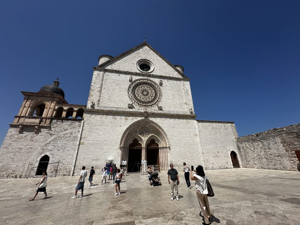 De tweede “grote” onderneming van onze week in Umbrië. We gingen naar de stad Assisi, weer enorm pittoresk gelegen op een berg. We gingen vroeg heen, want vanuit verschillende bronnen wist ik dat het een grote en drukke stad was. Dit keer parkeerde we wel beneden aan de stad en liepen we omhoog. Al snel kwamen we in een hele gezellige straat terecht en zagen we al de eerste kerk. Wat we ook zagen, waren heel veel mensen. Vooral veel mensen die duidelijk religieus gekleed gingen! Dus we pakte maar even onze beste vriend Google erbij. Blijkbaar is Assisi een hele populaire bedevaart plaats, omdat het graf van de heilige Franciscus hier ligt en er bovenop een prachtige basiliek is gebouwd. De Sint-Franciscusbasiliek, staat dan ook op de UNESCO wereld erfgoedlijst.