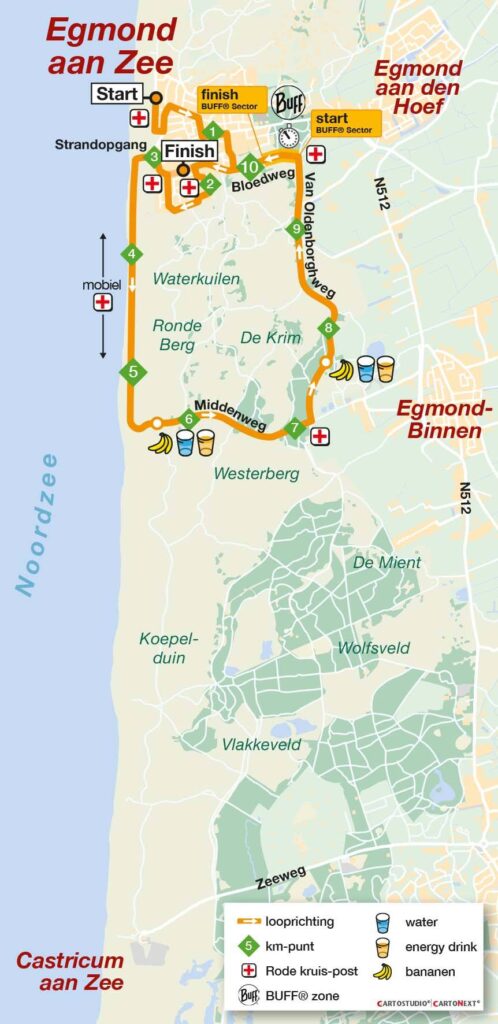 Hardlopen in Egmond aan Zee, in januari, is veelal een uitdaging vanwege het weer en het strand. De slogan van deze loop is dan ook; trotseer de Egmondse elementen. Het is dus echt even navigeren hoe om te gaan met de koud, wind en regen. Daarnaast is het ook een uitdaging om het duin op te gaan vanaf het strand, de duinen in bij Egmond Binnen. In de duinen, loop je verhaard, maar ook daar heb je nog aardig wat hellingen om te verover en in je laatste 500 meter is daar nog de Bloedweg met een aardige stijging!