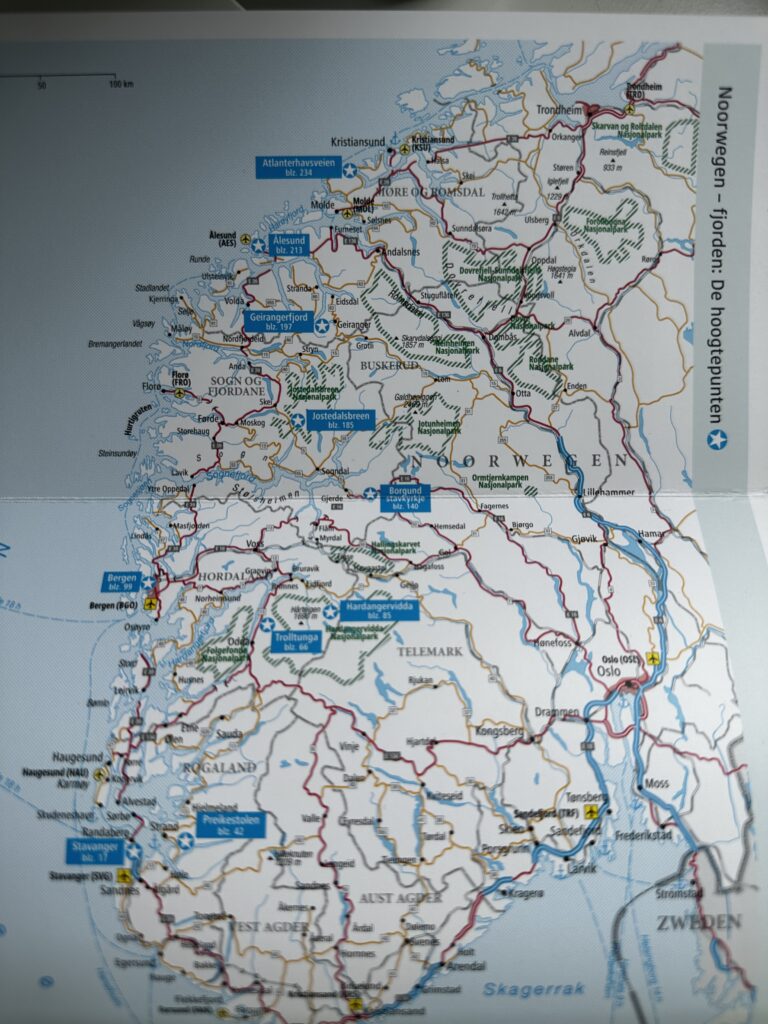Onze vorige trip naar Scandinavië (Lapland) hebben we geboekt bij Nordic. Dat is ons erg goed bevallen, dus ik dacht, laat ik eens een kijkje nemen bij het aanbod van Nordic naar Noorwegen. Daar boden ze verschillende trips aan. Uiteindelijk, eerlijk is eerlijk, heb ik de hoogtepunten die zij bij Noorwegen vinden horen, overgenomen. Die hoogtepunten ben ik online gaan onderzoeken. Aan de hand van die plaatsen, hebben we een eigen planning opgezet. We kwamen erop uit dat we voor deze trip naar; Hardangervidda, rondom Sognefjord, de Geirangerfjord en Rondane Nasjonalpark wilde reizen. Daardoor kwamen we er ook op uit dat we dit wilde doen met een auto. Een auto huren en vliegen, werd wel aan de dure kant. Dus, uiteindelijk, hebben we besloten om met onze eigen auto via Duitsland, naar Denemarken te rijden om daar met de boot over te steken naar Noorwegen.