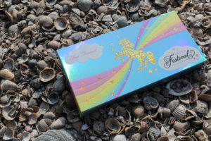 pastelkleuren en glitters. WEL heb ik een kritisch puntje. Ik ben van Too Faced andere soort paletten gewend. Zoals de Too Faced Chocolate Gold palette (de laatste in de Chocolate serie). Deze paletten zijn allemaal van metaal en hebben van binnen een best grote spiegel. Dit palette daarentegen, niet. Ik verwacht eigenlijk wel van zo een duur palette, dat het gemaakt is van een duurzaam materiaal en uitgevoerd met een spiegel die meer dan één oog laat zien. Nou, deze keer niet. Shame on you, Too Faced! Deze keer is het gemaakt van een soort plastic en de binnenkant van karton. Ik ben erg benieuwd hoe lang de verpakking mooi blijft! Het ontwerp blijft natuurlijk wel geniaal. Door de gekleurde regenboog ben je direct vrolijk en in de stemming voor het nieuwe festival seizoen.